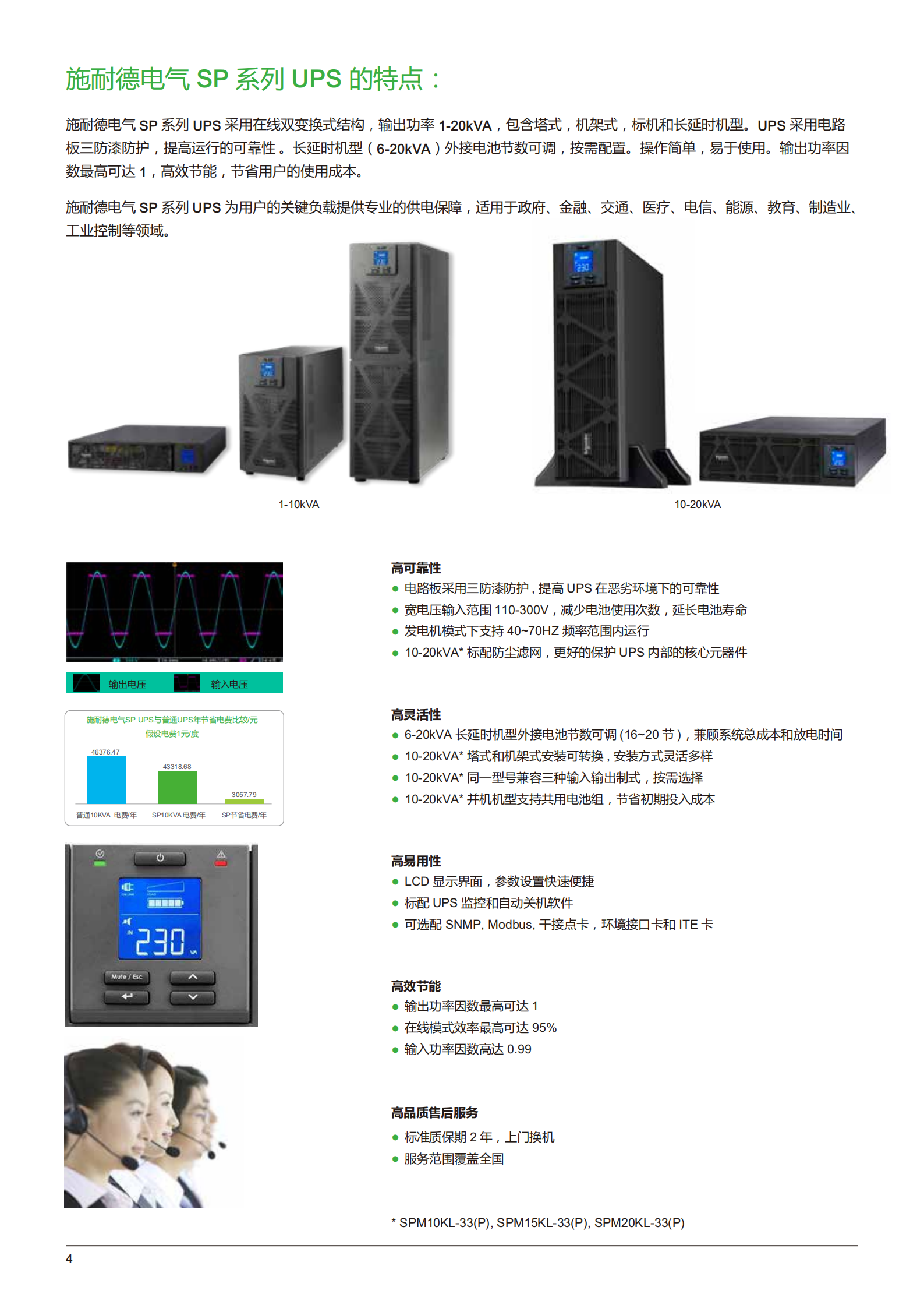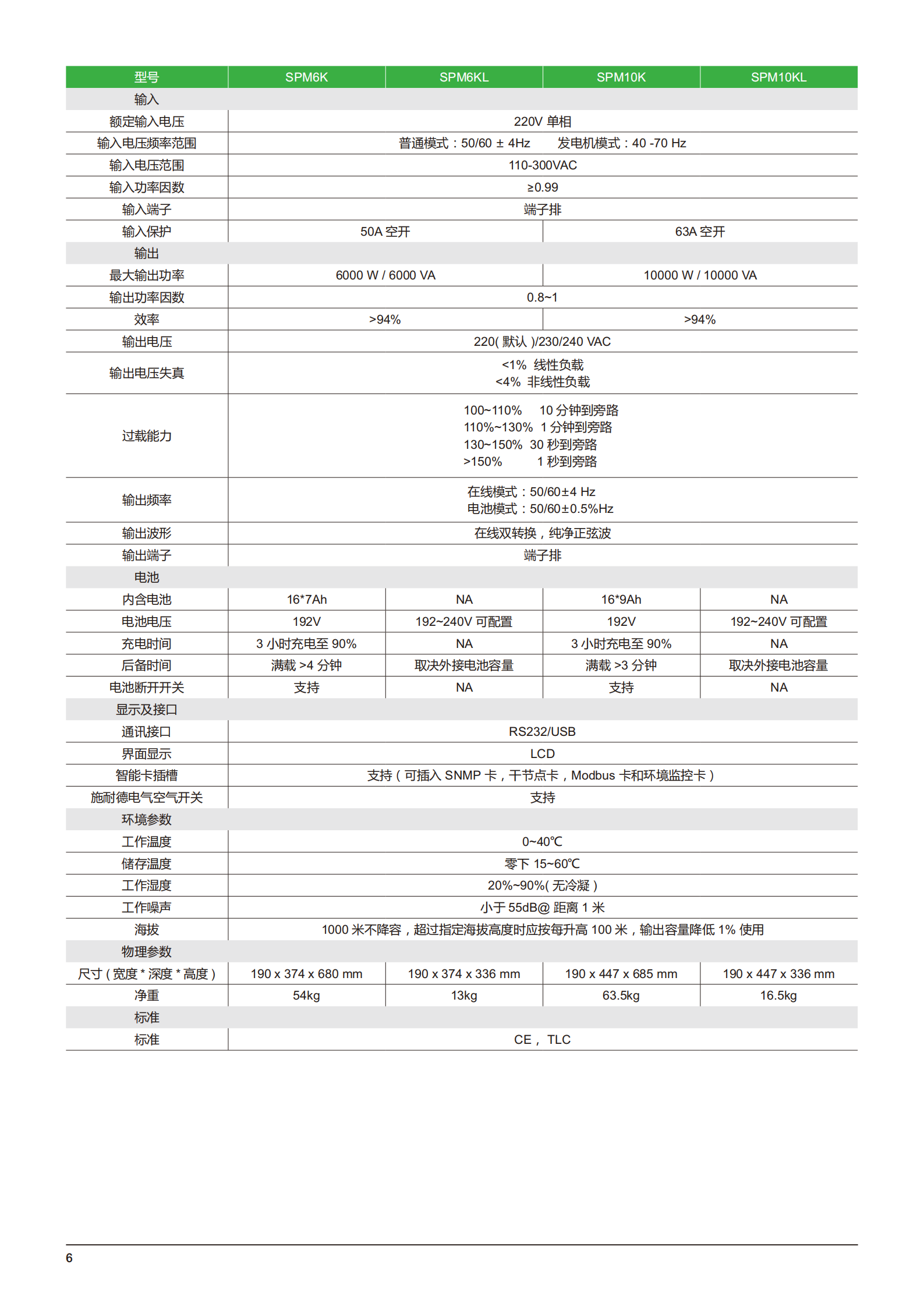 施耐德SPM在线不间断电源6kV10KVA塔式机,220V优质双转换在线不间断电源设计,即使在不稳定的电力条件下也能满足基本的电力保护需求包括: 不间断电源信号 RS-232线, 软件光盘, 通用串口总线信号线, 用户手册